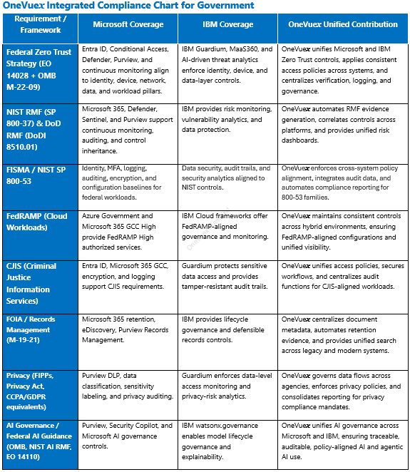 While Microsoft provides the cloud identity foundation and IBM delivers deep data, security, and governance, OneVuex unifies, operationalizes, and automates it all across the government enterprise.